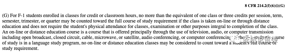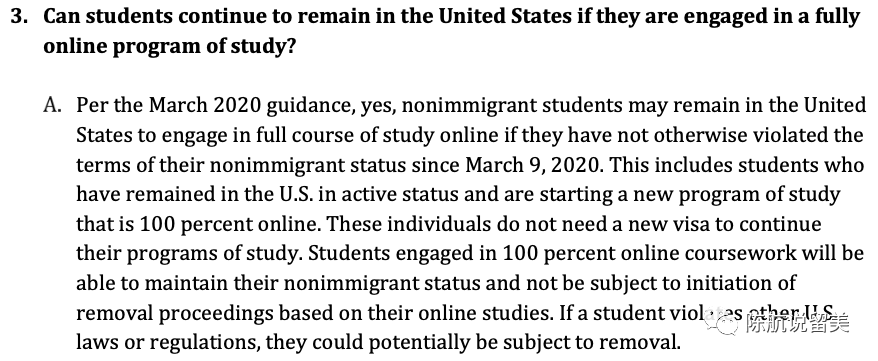 然后又重申,100%线上学习 (full course of study that is 100 percent online)的新生,不能入境。