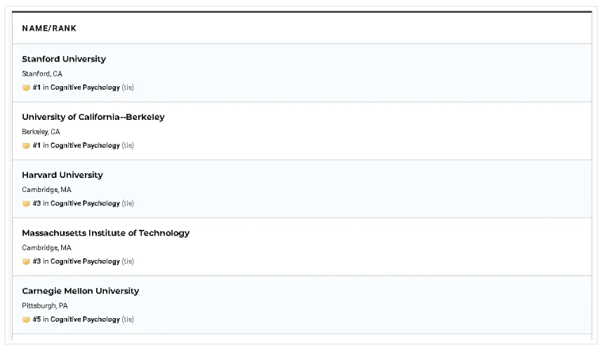二、美国心理学专业的排名