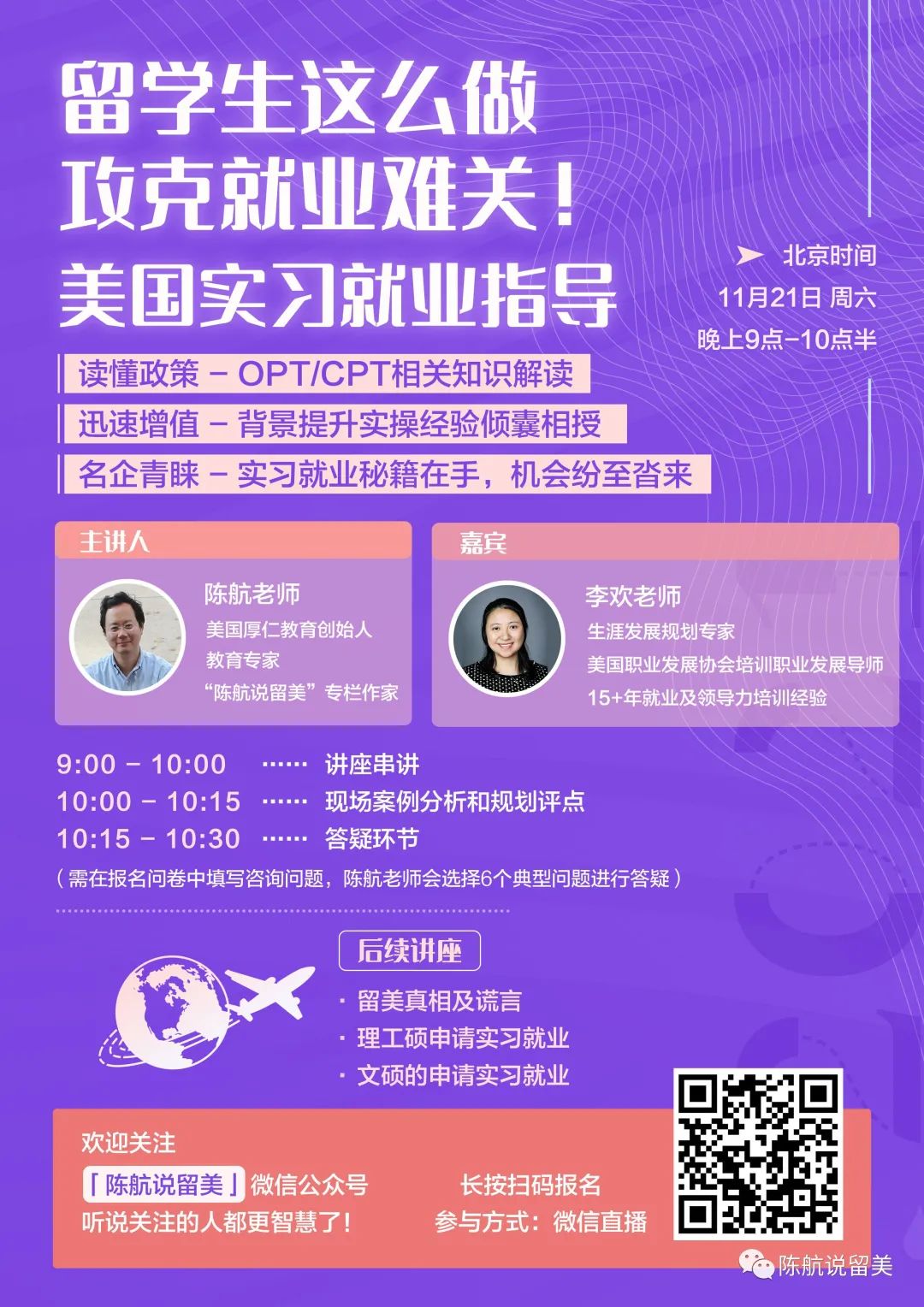 【对在美实习就业感兴趣的朋友,可以报名参加文末的讲座。】