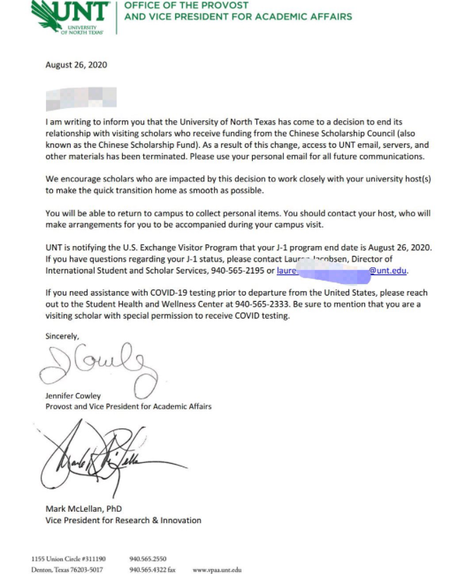 就在近日,据环球时报报道,美国北德克萨斯大学突然决定驱逐所有受中国国家留学基金委员会资助的公派访问学者和留学生,并限他们在一个月内离境。