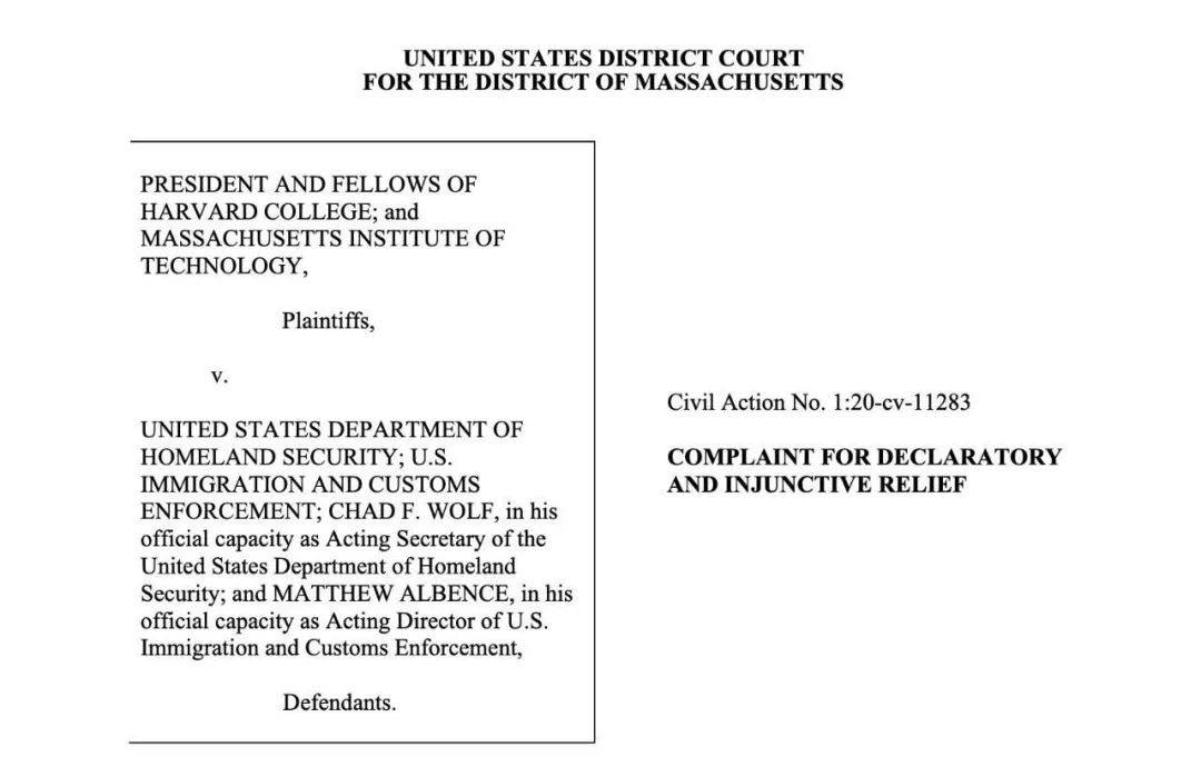 不过好在,仅仅两天之后的7月8日,哈佛与MIT就立刻联手起诉了负责这项规定的美国国土安全部、移民和海关执法局。