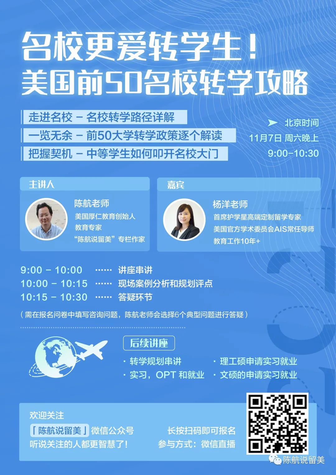 【对前50名校转学攻略感兴趣的朋友,可以报名参加文末的讲座。】
