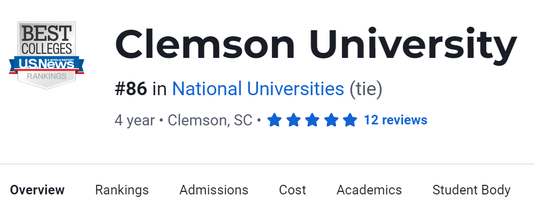 在2024年USNews美国大学排名中,Clemson University排名第86。