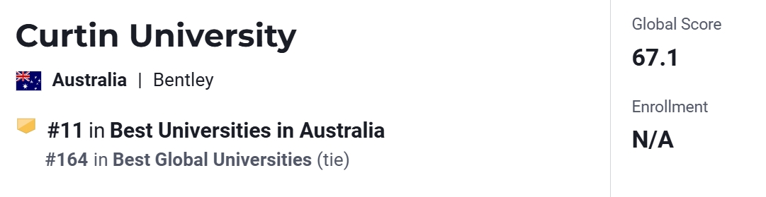 2025年,Curtin University位列U.S. News全澳第11、世界第164位。