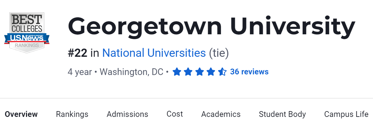 在2024年USNews美国大学排名中,Georgetown University排名第22。