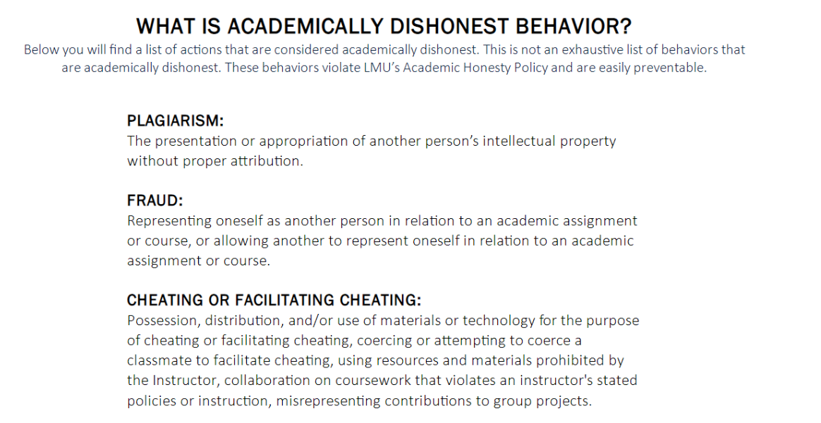 学术诚信是 LMU 学术教育的核心基础。学校一直致力于学术诚信的根本,确保每一位学生都可以通过大学教育学习到真正的知识。任何有损于学术诚信的行为都将不被允许并有可能带来严厉的处罚。