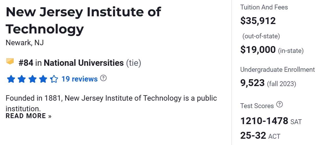 在2025 年USNews美国大学排名中,NJIT排名第84位。