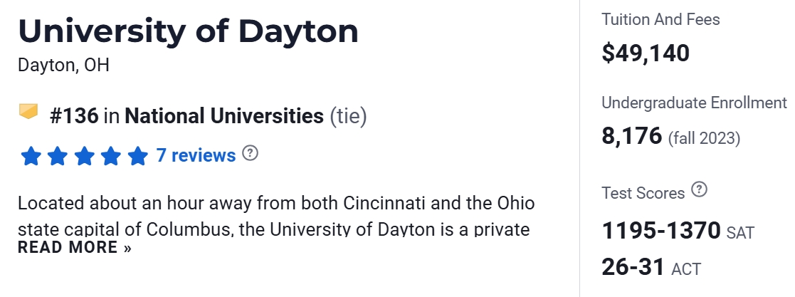 在2025年USNews美国大学排名中,戴顿大学排名第136。