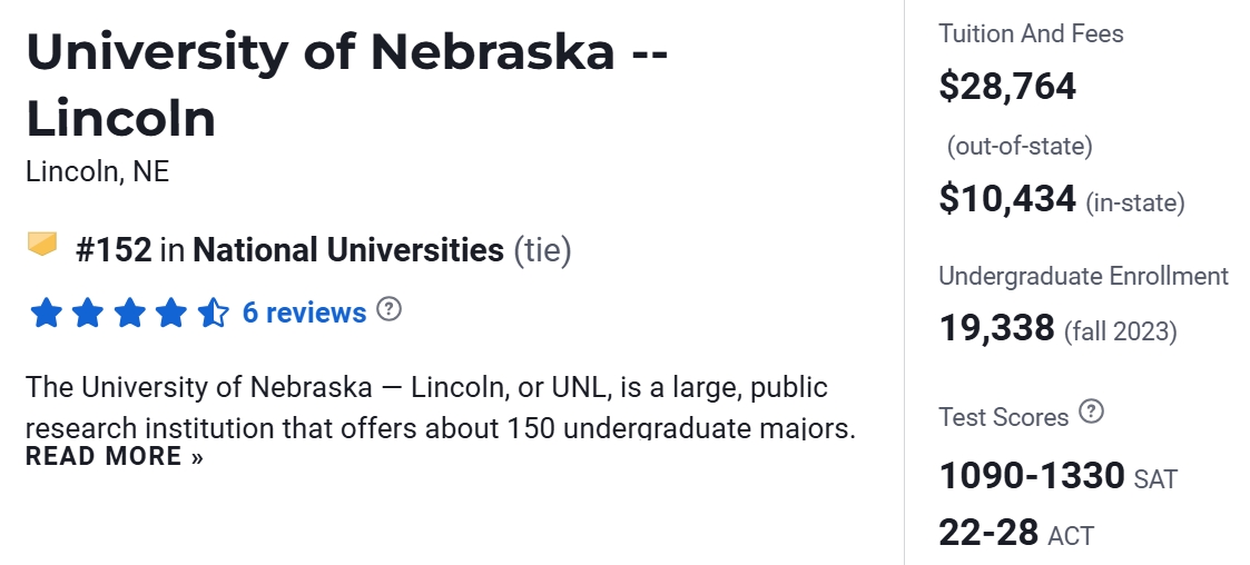 内布拉斯加大学林肯分校 (University of Nebraska–Lincoln)简称UNL、NU,又译内布拉斯加-林肯大学,成立于1869年。是内布拉斯加大学的最主要成员及最早的分校,是该州的学术文化中心。在林肯市主要有两个校区,City Campus(紧临林肯市中心的正北)和东校区(East Campus)。股神沃伦·巴菲特是UNL的校友。2025年U.S. News排名全美大学第152。