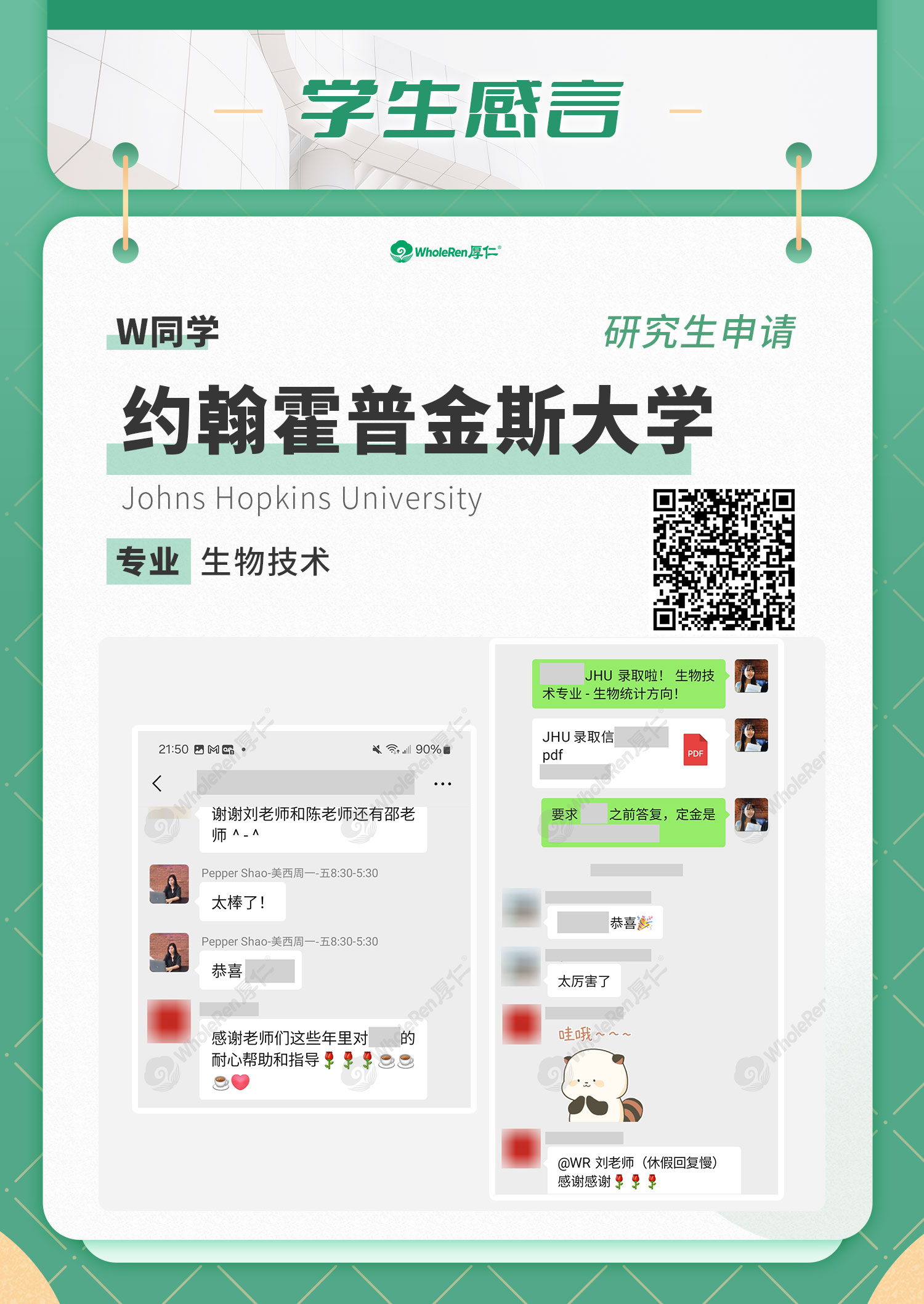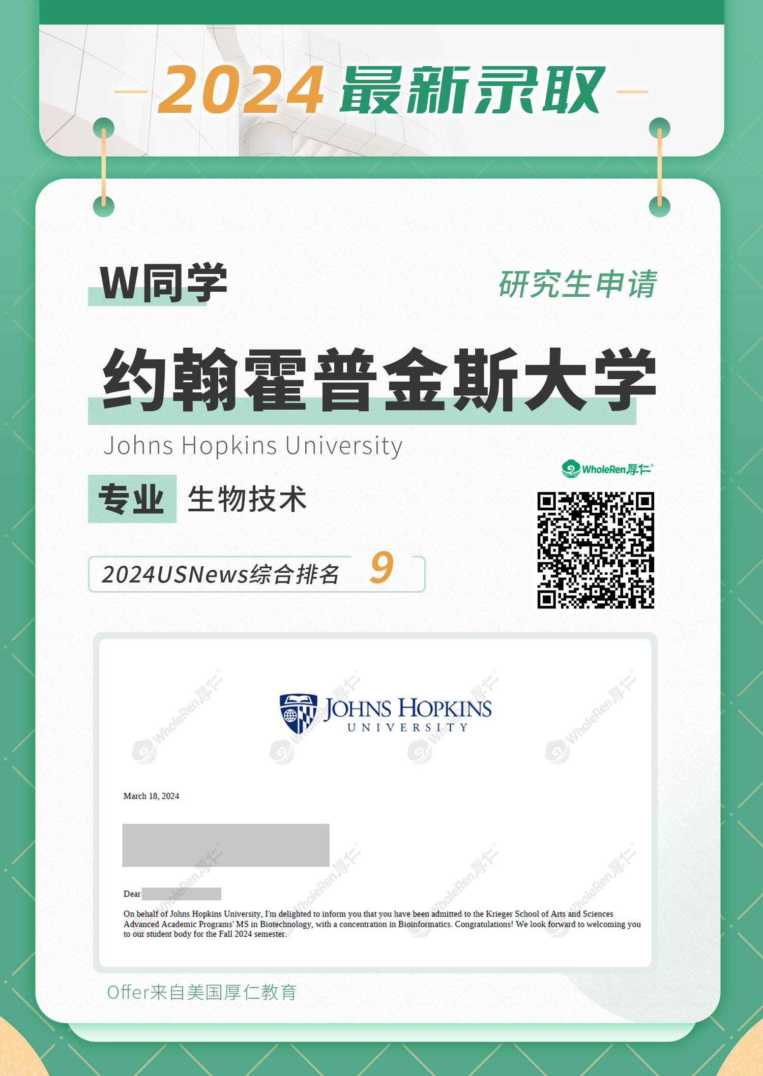 【JHU】W同学专业决定较晚经全程规划顺利取得名校offer