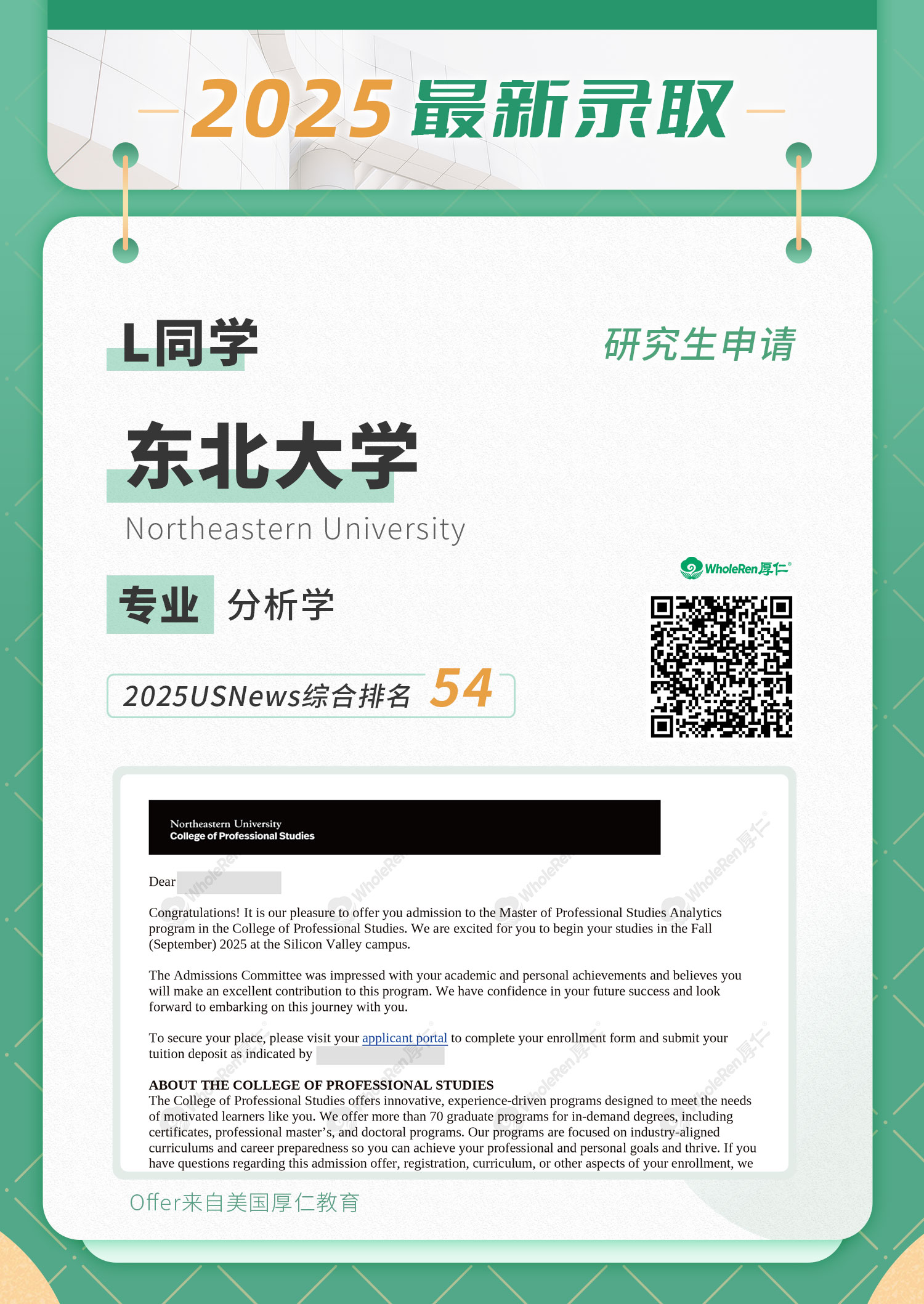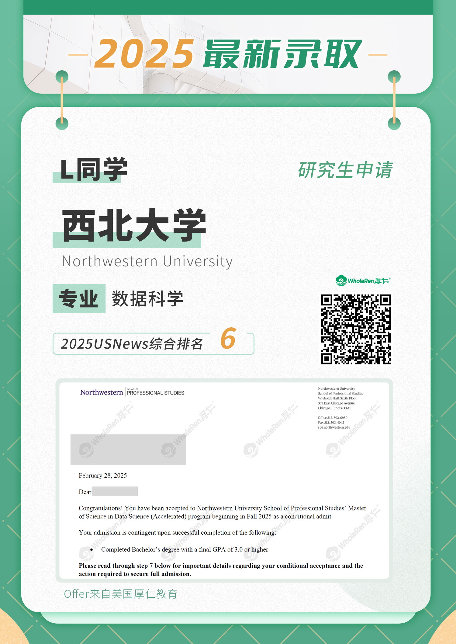 【Northwestern】L同学成绩中等,逆袭拿下西北等顶级院校Offer!
