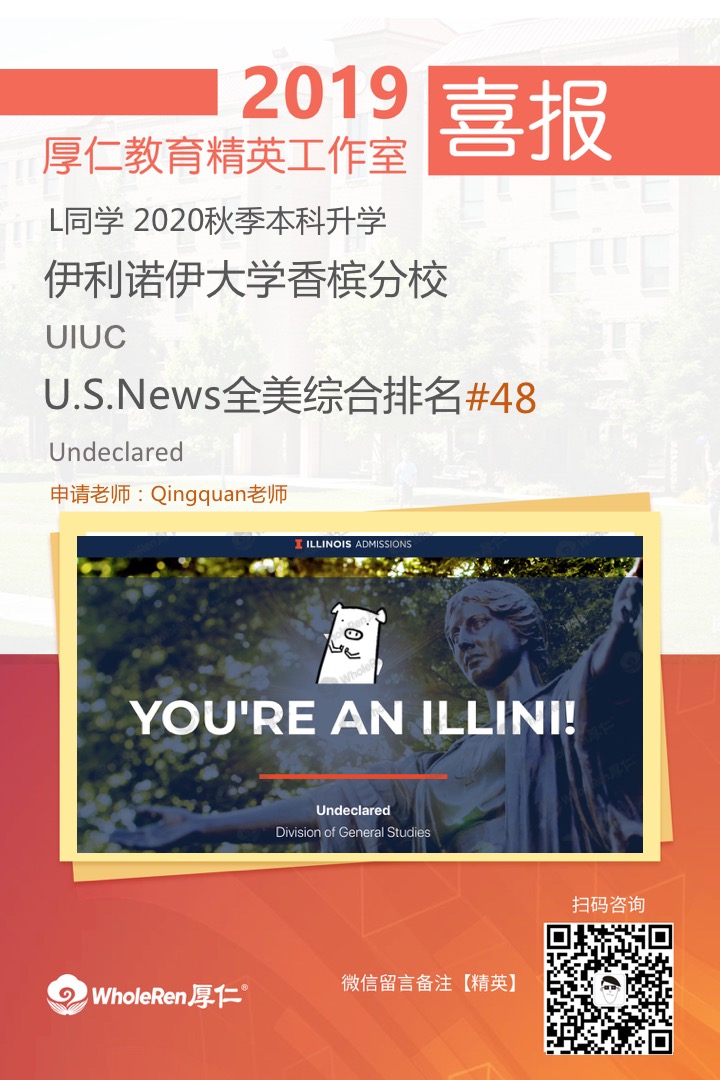 录取结果:加州大学圣地亚哥分校 UCSD 加州大学戴维斯分校 UCD 加州大学尔湾分校 UCI 佩普代因大学 Pepperdine University 罗格斯大学 Rutgers University 宾州州立大学 Pennsylvania State University 波士顿大学 Boston University 伊利诺伊香槟分校 UIUC 康乃狄格大学 University of Connecticut Waiting list 加州大学圣塔芭芭拉分校 UCSB