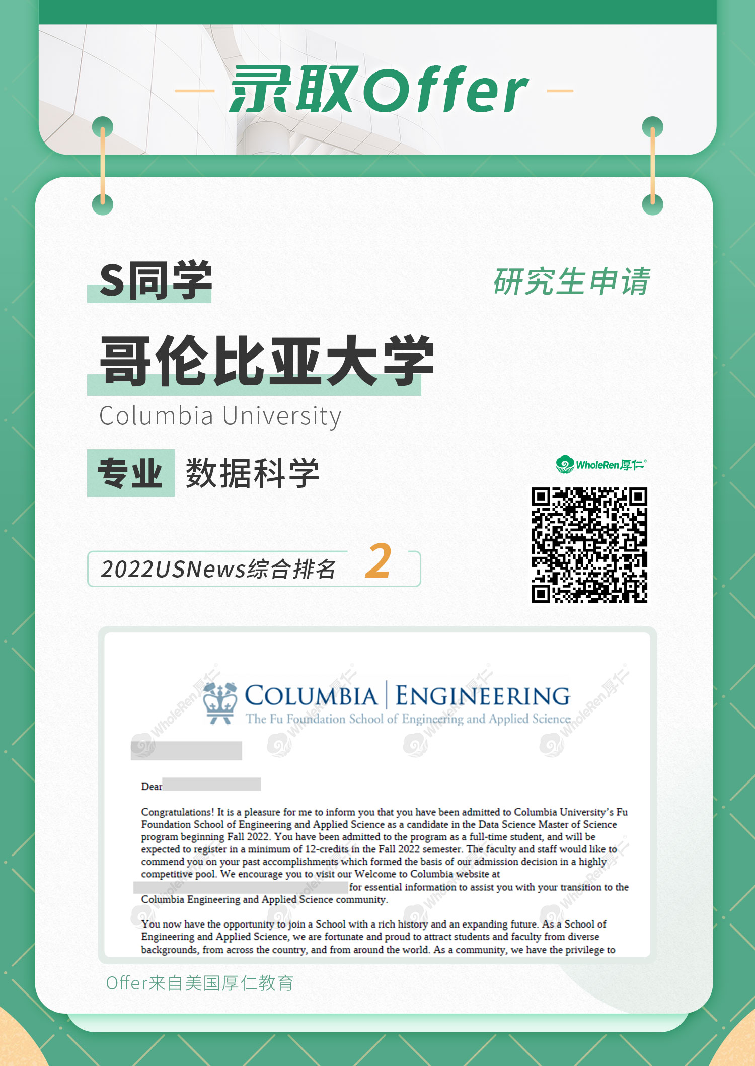 【哥大】S同学经过专业指导成功冲刺TOP名校
