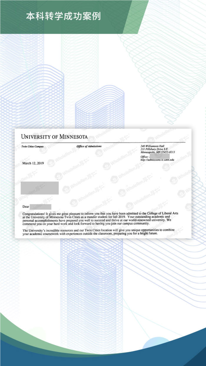 经历人生低谷后,Z同学痛定思痛,在社区大学期间努力提升成绩,还听从厚仁专家建议,积极参与数学俱乐部和数学竞赛,发现了自己的兴趣,并且和数学教授建立了良好的关系,获得教授很高的评价。转学申请中,孙老师帮助Z同学深度挖掘文书素材,体现学习潜力和对数学的热爱,最终成功打动招生官,拿到了梦校明尼苏达双城的录取。收到消息时,所有的所有都在Z同学一连串感叹号中,此时无言胜过一切有声的表达。