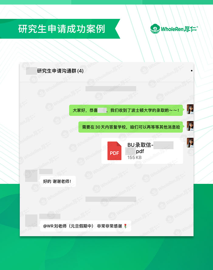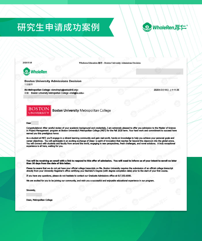 L同学目标是美国前50大学,但GRE成绩始终不理想,最后由于回国找实习,放弃继续刷分,标准化成绩成为了短板。对于申请前50的学校来说,增添了一些不确定性。L同学找到星空app官方网站手机版,希望得到专业指导增加录取成功率。 此前的两三段实习都是在国内的暑期实习含金量并不高,厚仁老师在文书中重点突出L同学的工作难度和知识技能,把闪光点放大。 L同学最终获得波士顿大学等多所名校录取,祝贺!