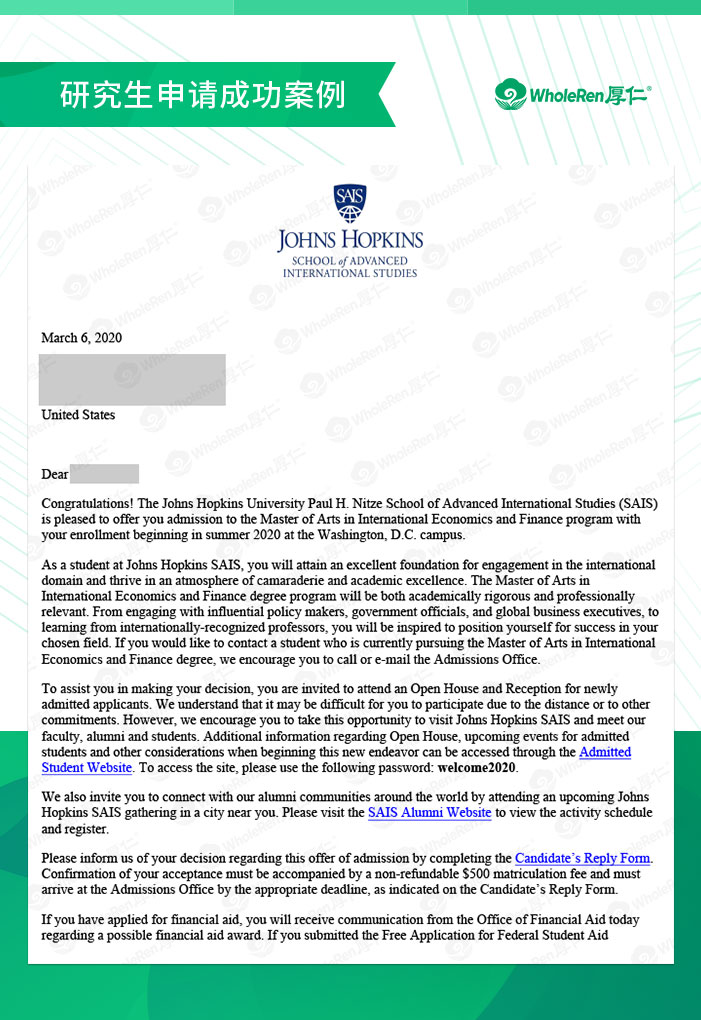 录取结果:加州大学欧文分校, 约翰霍普金斯大学, 罗格斯大学