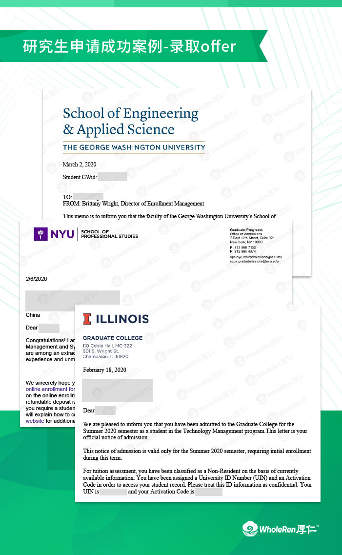 录取结果:乔治华盛顿大学, 伊利诺伊大学香槟分校, 纽约大学(未完待续)