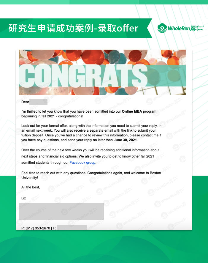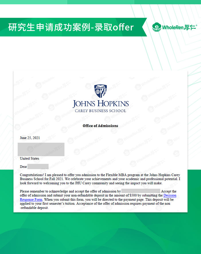 最终H同学选择了去JHU,厚仁团队祝福H同学在今后的留学道路上一帆风顺!