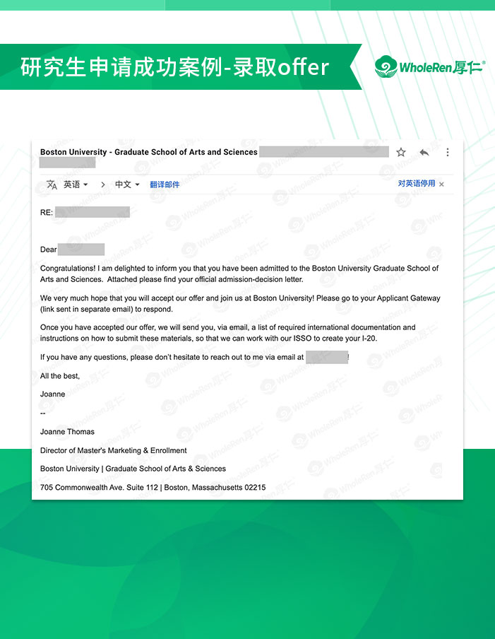 最终S同学拿到了包括约翰斯霍普金斯大学、加州大学圣地亚哥分校在内的多所顶尖专业院校的录取。厚仁团队祝福S同学在今后的留学道路上一帆风顺!