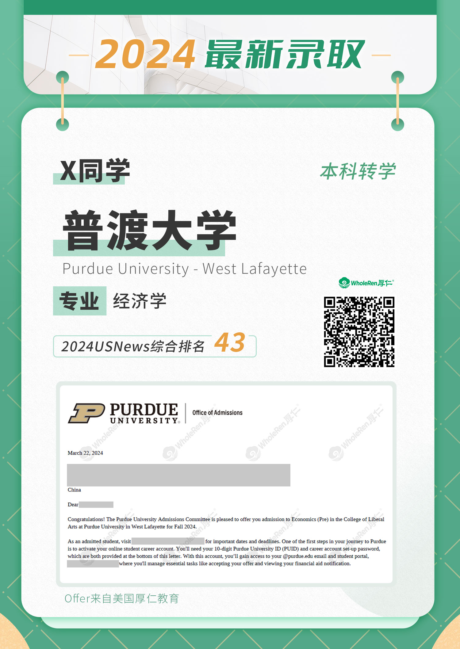 最终,学生拿到普渡大学的录取,突破了自己。X同学十分开心,并希望继续选择厚仁团队,为其规划暑假及后续长期研究生申请。恭喜X同学,祝学业顺利,未来可期!