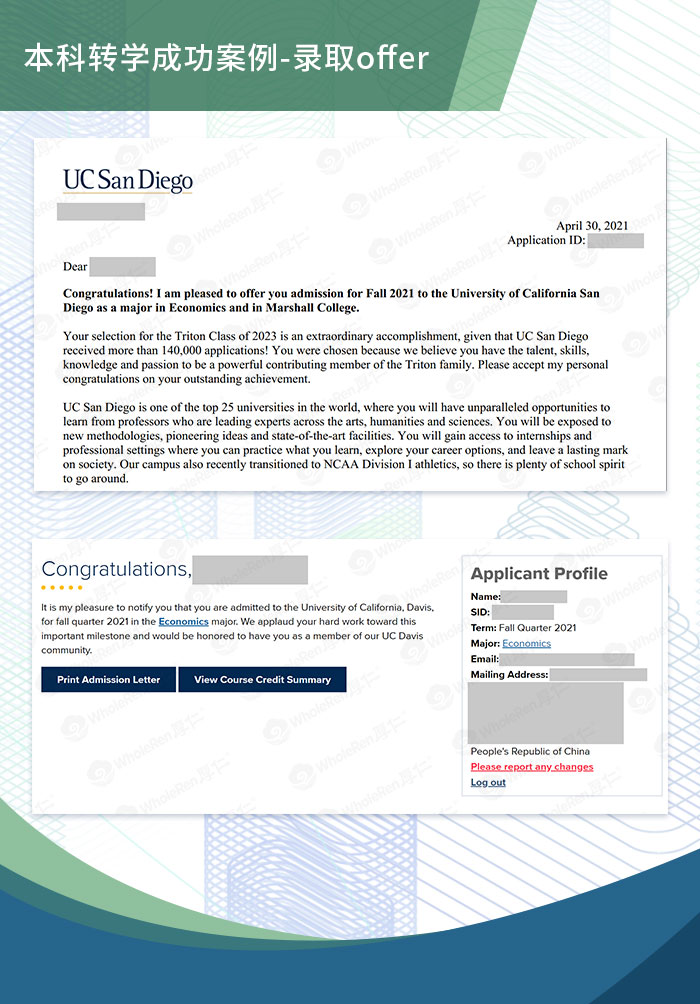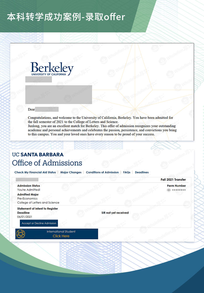 最终L同学被University of California--Berkeley、University of California--Santa Barbara等名校录取,并进入梦校UCB继续学习。厚仁团队祝福L同学在今后的留学道路上一帆风顺!