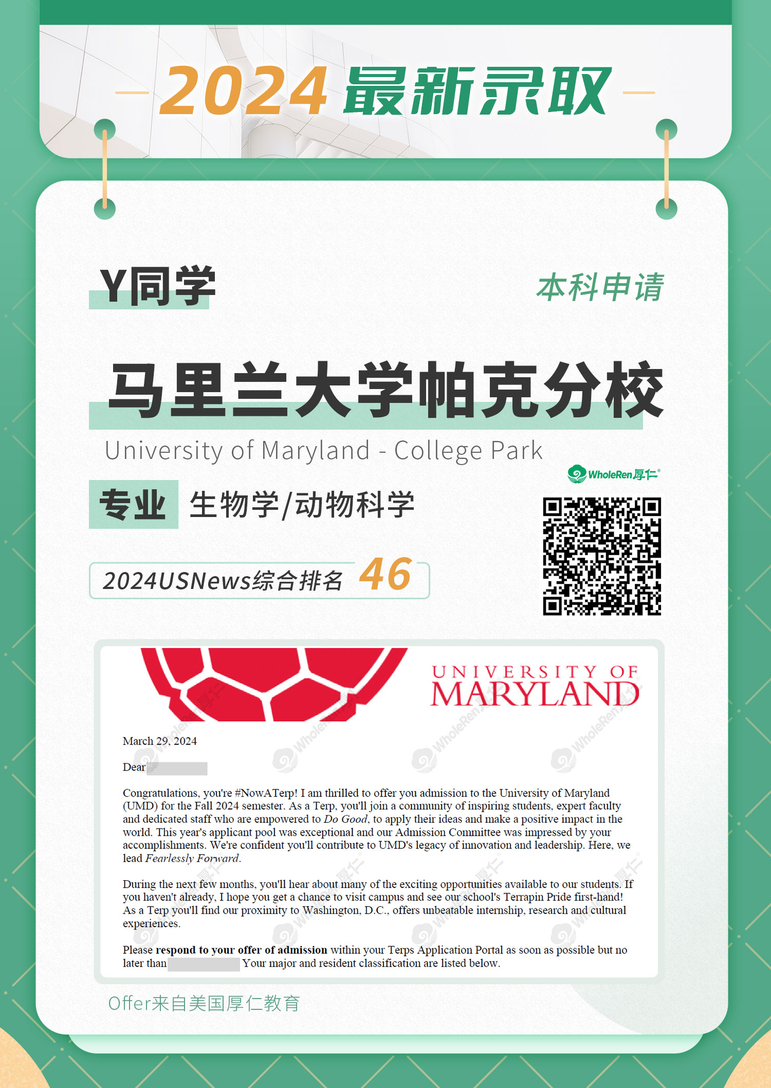 录取结果:加州大学戴维斯分校 UCD 佛罗里达大学 UF 加州大学圣地亚哥分校 UCSD 加州大学欧文分校 UCI 加州大学圣塔芭芭拉分校 UCSB 威斯康星大学麦迪逊分校 UW–Madison 马里兰大学帕克分校 UMD 奥本大学 AU