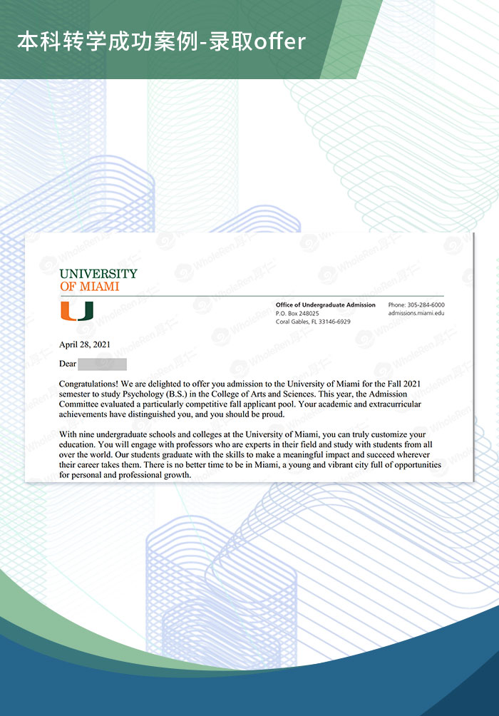 最终H同学获得了University of Miami、Purdue University West Lafayette等学校的录取。厚仁团队祝福H同学在今后的留学道路上一帆风顺!