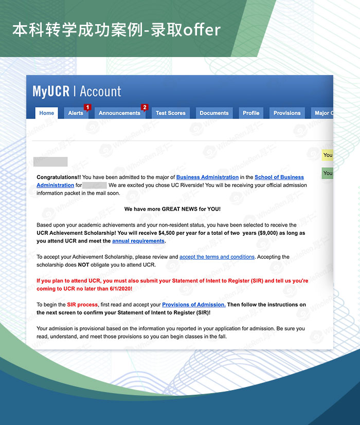 B同学的优势在于GPA保持的不错,弱项在于没有高中毕业证,且属于跨州申请转学,有一定挑战难度。