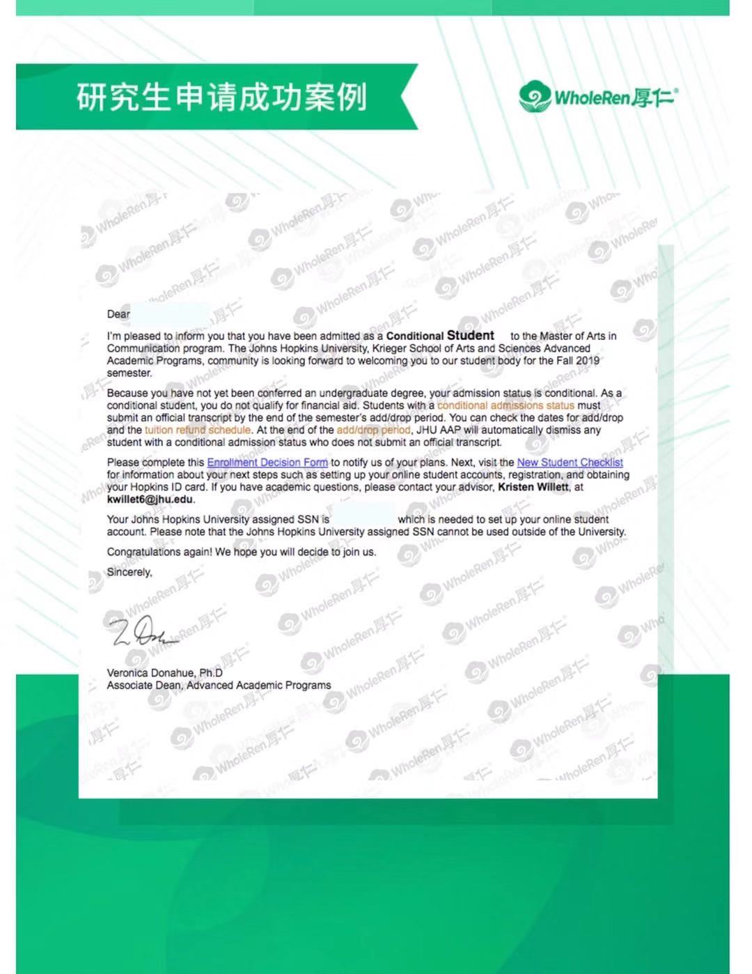 录取结果:约翰霍普金斯大学 John Hopkins University, 哥伦比亚大学 Columbia University