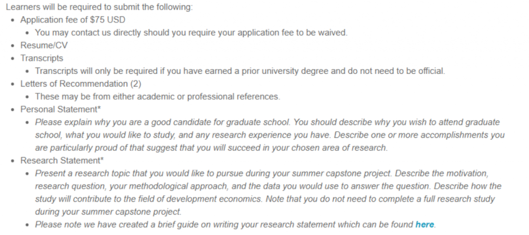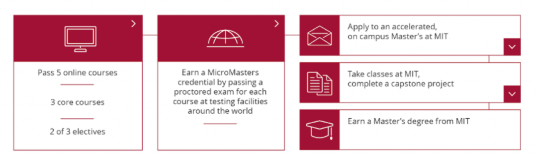 但是,在这里确实存在着一个矛盾,美国的本科教育虽然是4年学制,但是其实专业课一般也就十来门,其他的是大量的通识及跨学科教育,而研究生则是强调专业基础的,在校学习期间对于本科通识教育的要求并不高,那美国是否存在可以自学本科阶段专业课程,然后直接申请硕士的学校及项目呢?麻省理工MIT就有。在MIT的经济系,2019年第一次开放硕士项目(之前只提供Ph.D项目),且在入学要求上非常有意思,只需要申请者完成其五门难度颇高的在线课程,通过考试,就能进行申请。