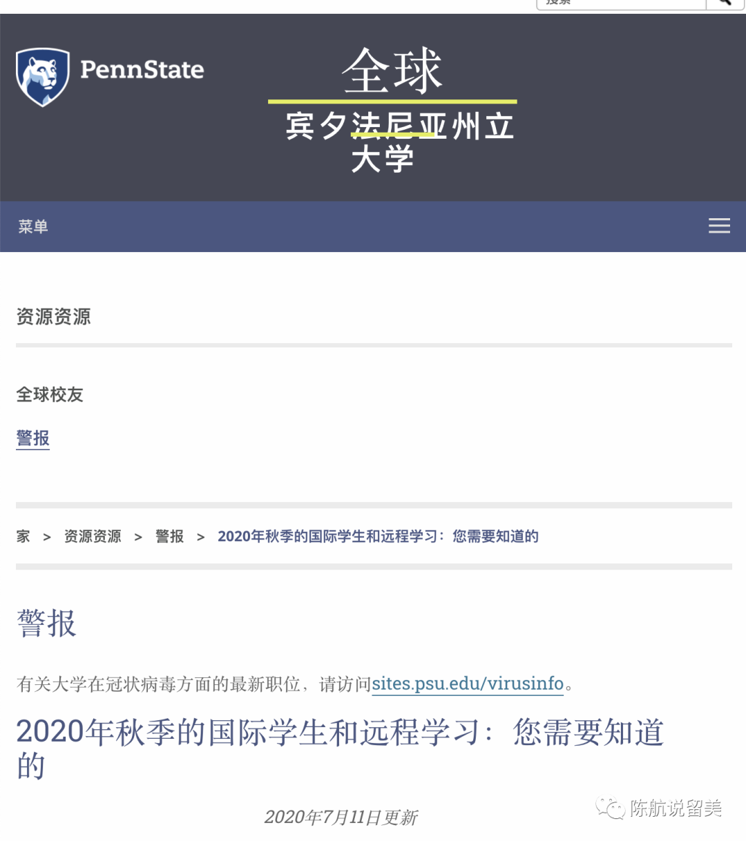 白纸黑字,网址在这里 https://global.psu.edu/fall2020remotelearningfaq ,7月11日,周六最后更新。