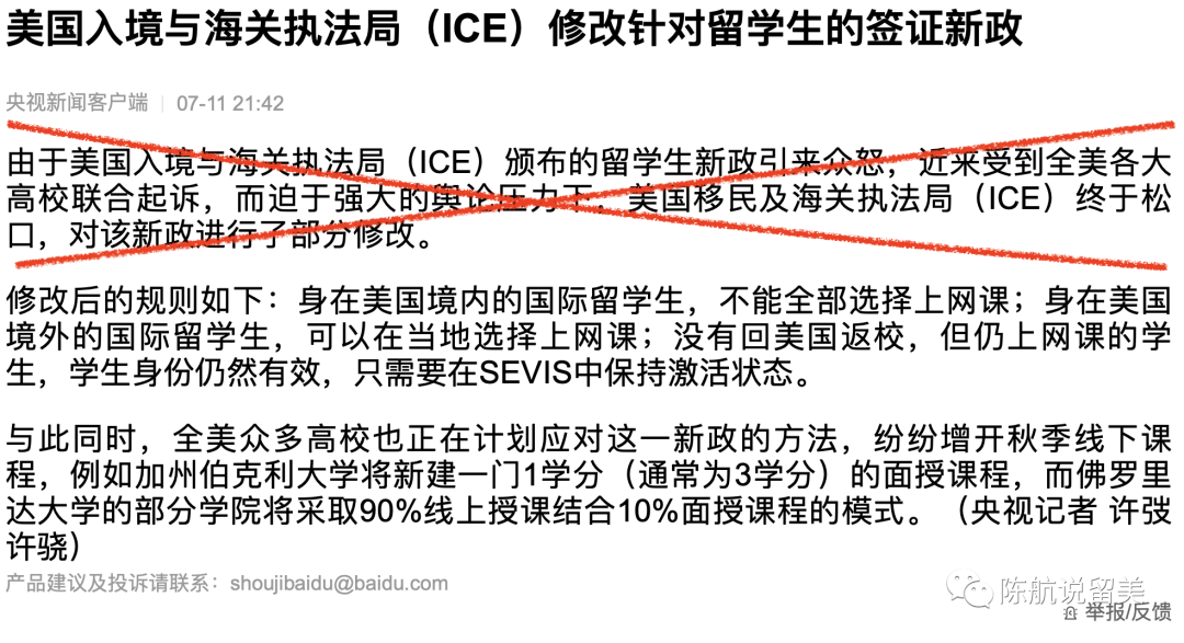 央视新闻把两个点都讲错了,而且还有一个错误,就是ICE修改的不是”签证”政策,而是学生身份政策 . 央视讲的都是外行话,不听也罢了。