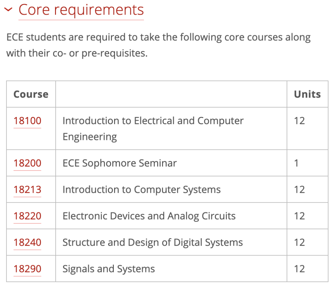 以卡耐基梅隆大学(CMU)的电子与计算机工程(B.S. in Electrical and Computer Engineering)专业为例,学生们需要完成的毕业要求有:
