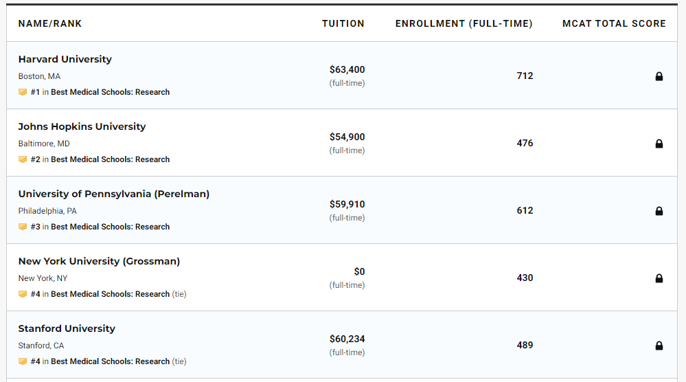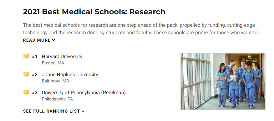 在最佳医学院排名中,除了斯坦福大学略有下降外,TOP3还是那三所学校,真是万年不变。