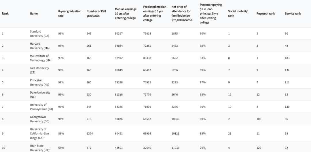 第10名则是犹他州立大学,比去年前进了4名。而在US News排行榜中,它仅位列第254名。
