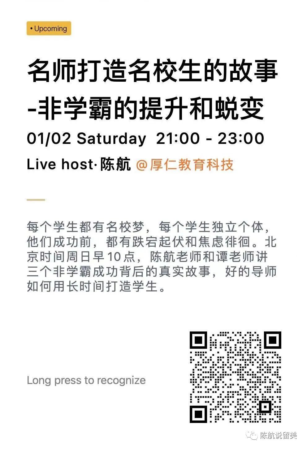 微信ID:陈航说留美