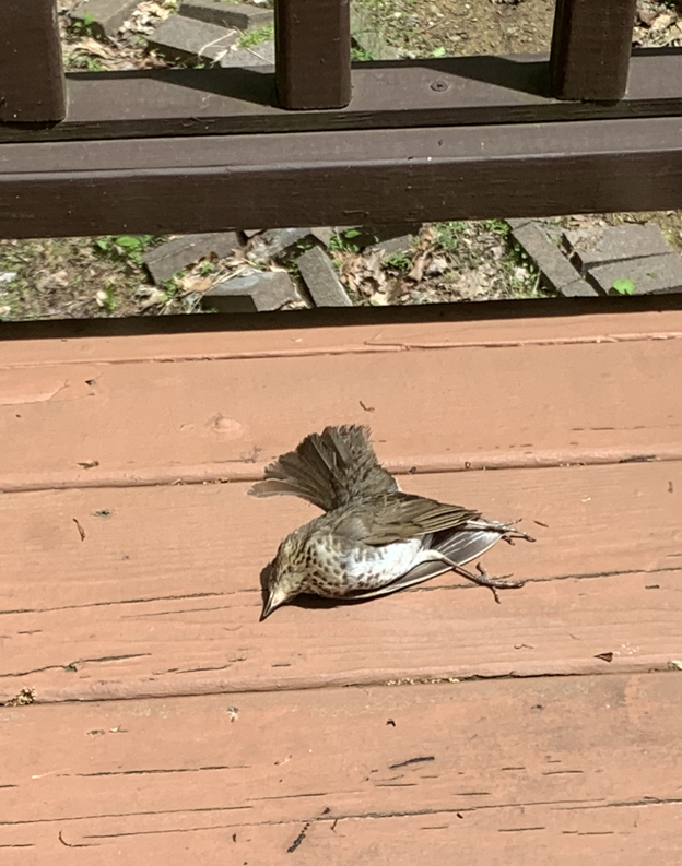 窗外走廊上死了一只鸟,