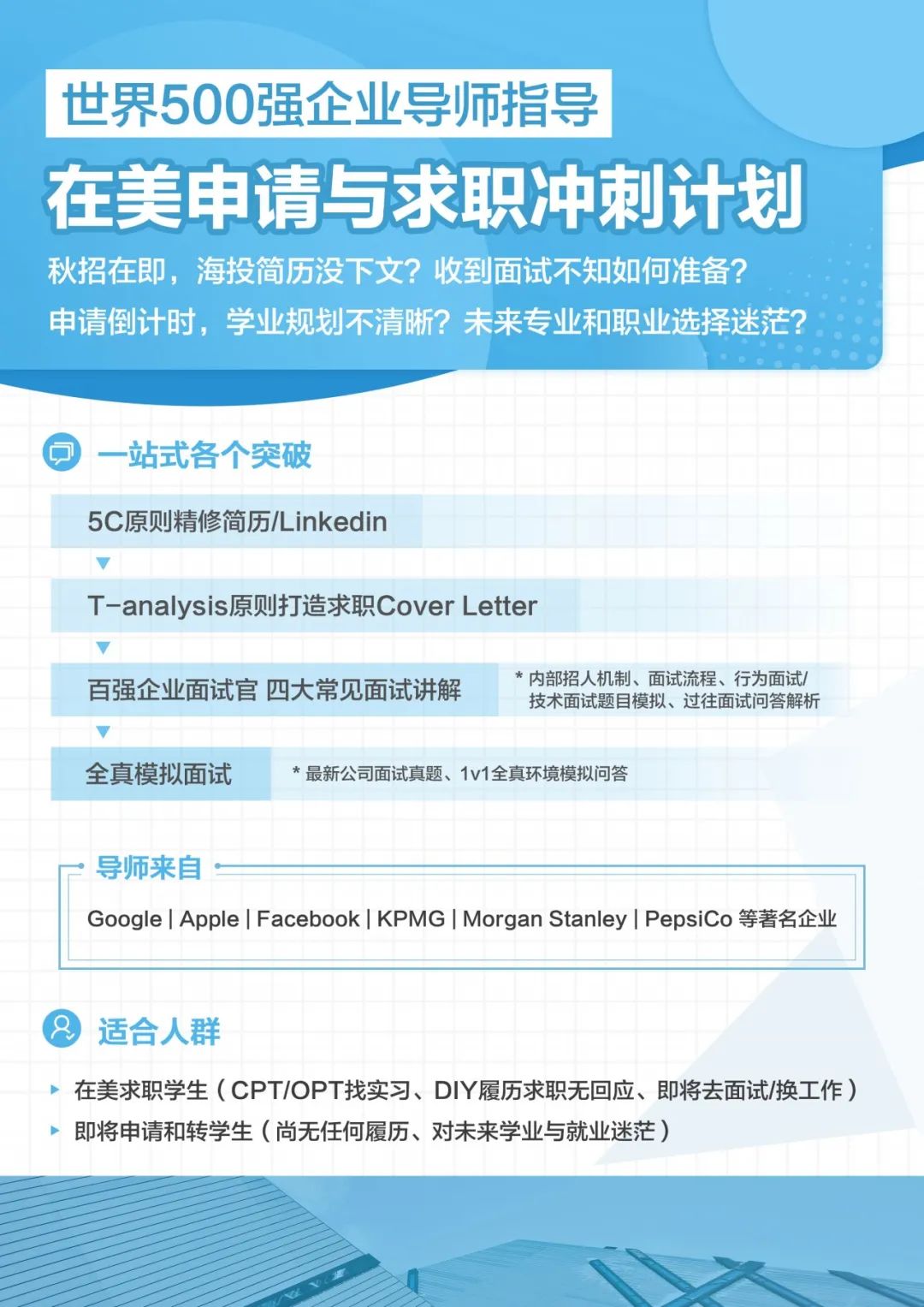 6️大方向企业培训生机会,参与真实业界项目,提升专业背景,填补简历空白,丰富文书素材,让你实力up up up!机会总是留给有准备的人,抓住机会,现在!立刻!马上!联系我们咨询详情报名吧!
