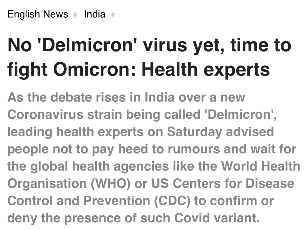 也就是说,根本没有什么新毒株“Delmicron”,全是一些媒体瞎炒作。