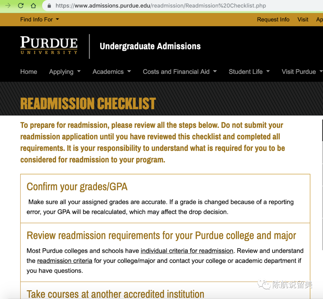 而且普渡大学强烈建议,在外校修的课程,最好和学生的专业相关。所以,不是在校外修的课程,都能够作为再入学申请的依据。