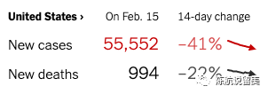 到2月15号为止,14天新增确诊下降41%,死亡人数下降22%。