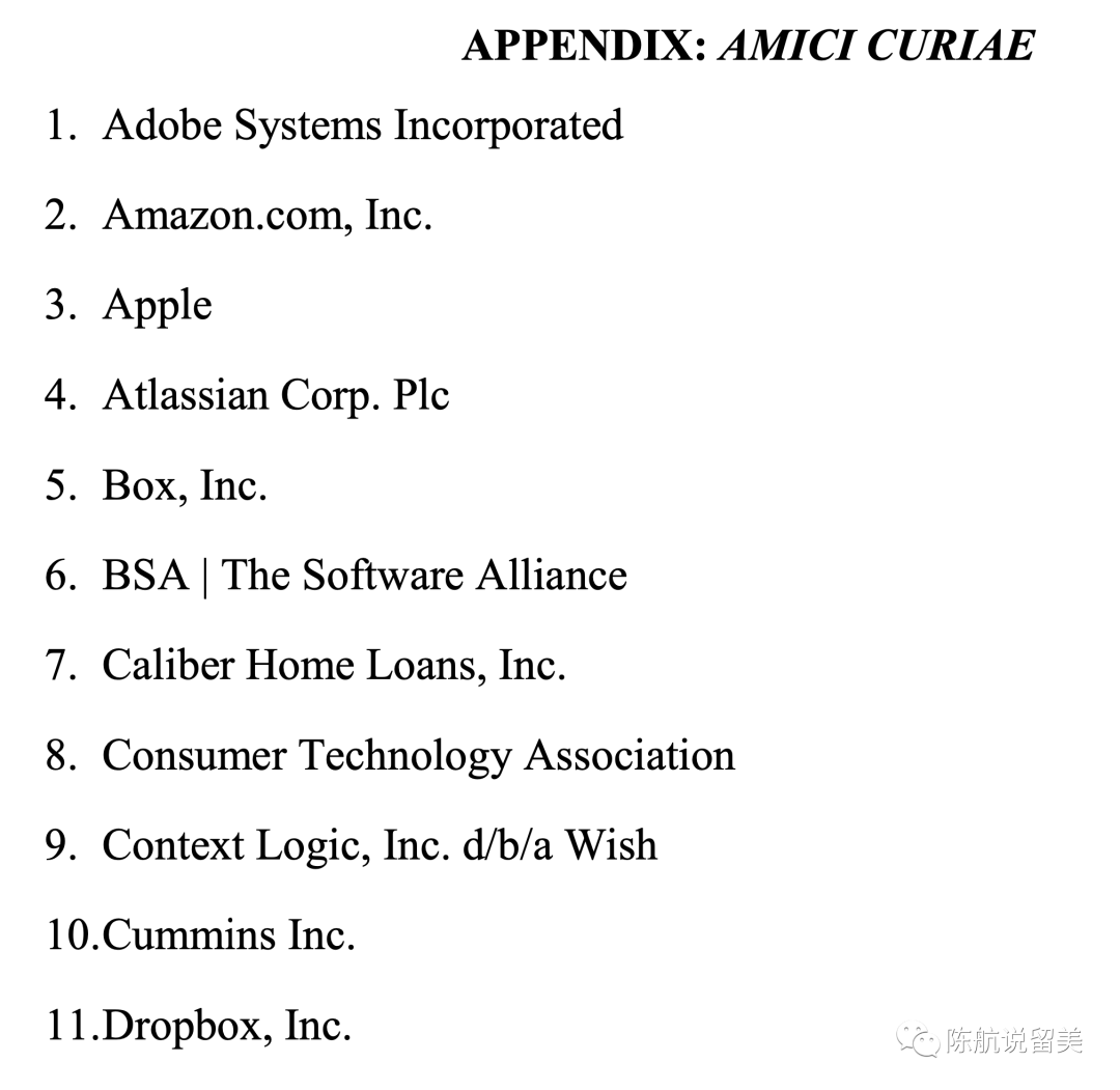 随后,美国的 46 个大公司和企业给以支持,包括苹果,亚马逊,微软,Facebook 等。