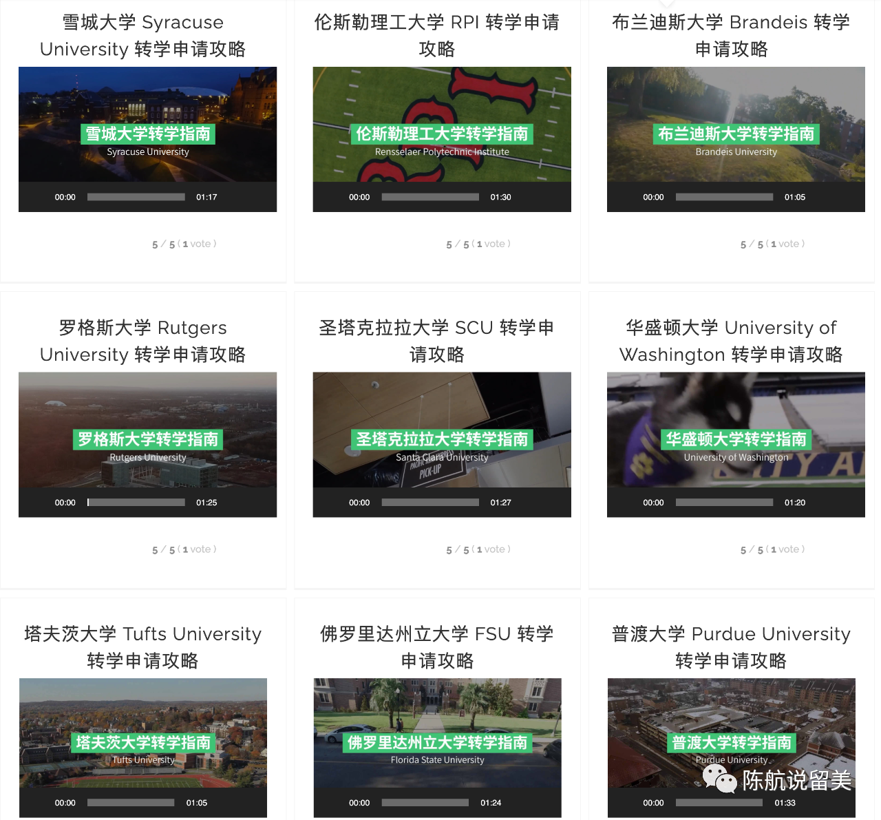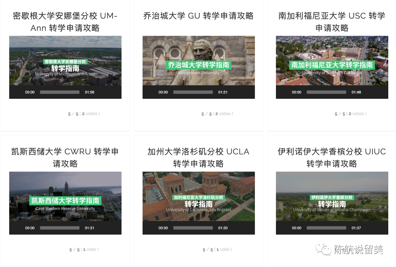 我和我的同事,经过几年的时间,整理了美国名校转学的信息,录制成讲座和视频,在美国转学中心 transferadm.com 这个网站上(可点击“阅读原文”查看),还有更多的信息。