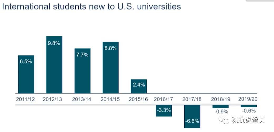 截止到疫情前,来美新国际学生人数,这四年一直在少量下降。