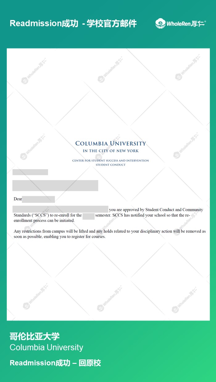 【哥大】G同学考试时作弊被停学一年帮助后顺利Readmission回原校