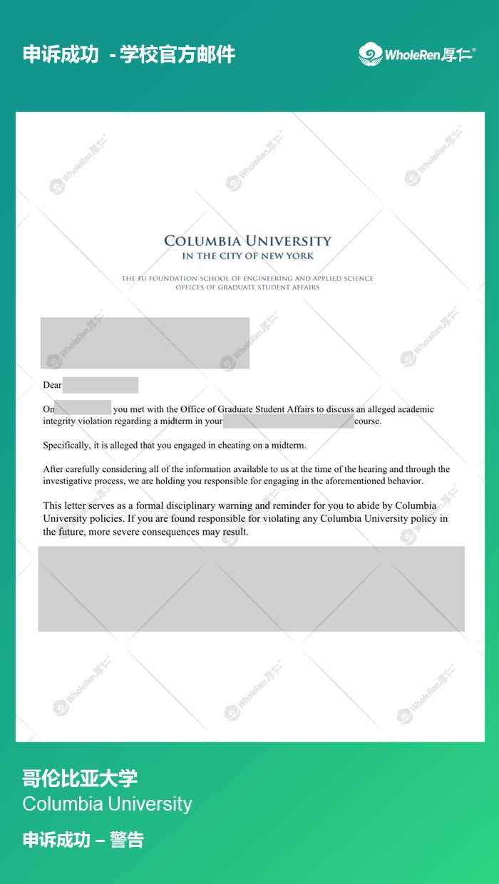 专家老师在了解情况后,指导学生解释分享答案的原因,并证明自己独立完成的考试,对于分享考试内容的错误行为作出诚恳道歉和求情,最终被学校警告,顺利留校。