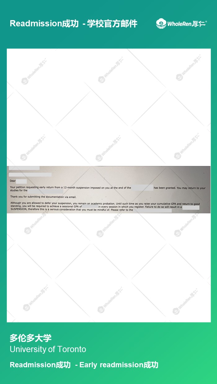 【多伦多大学】J同学成绩差停学一年early readmission成功