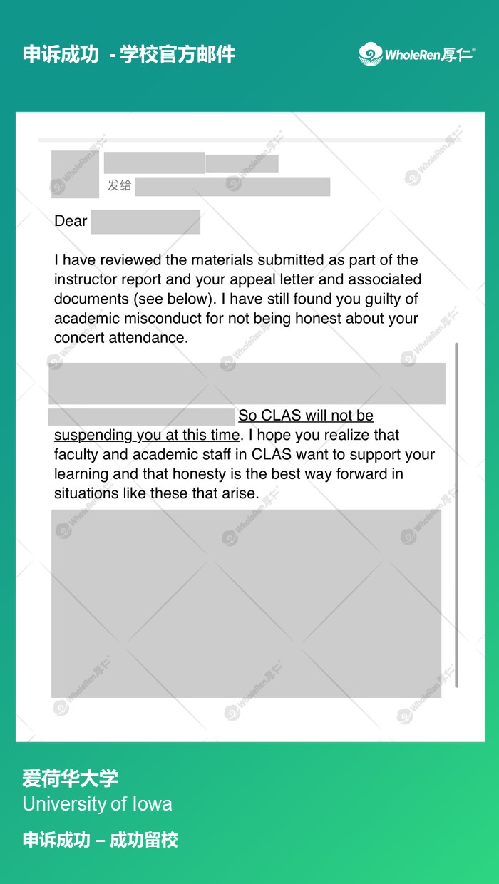 【爱荷华大学】B同学作业不诚信被停学申诉后顺利留校