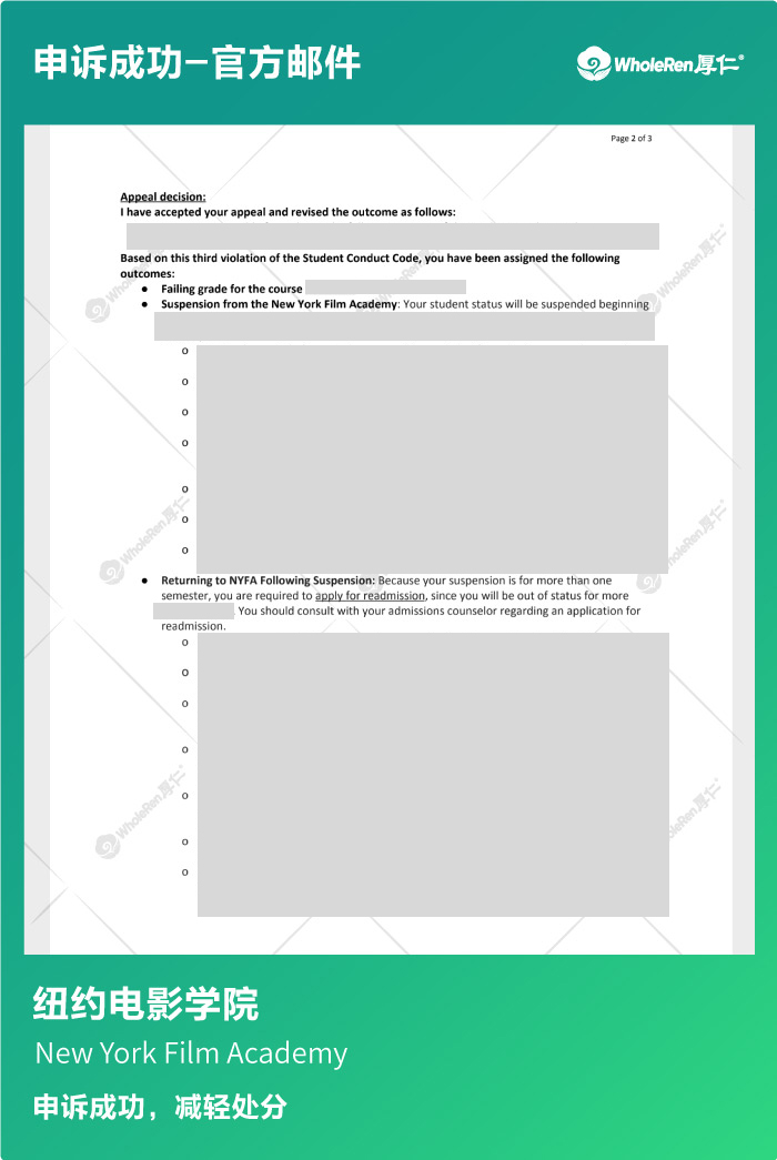 【纽约电影学院NYFA】C同学引用不当申诉成功