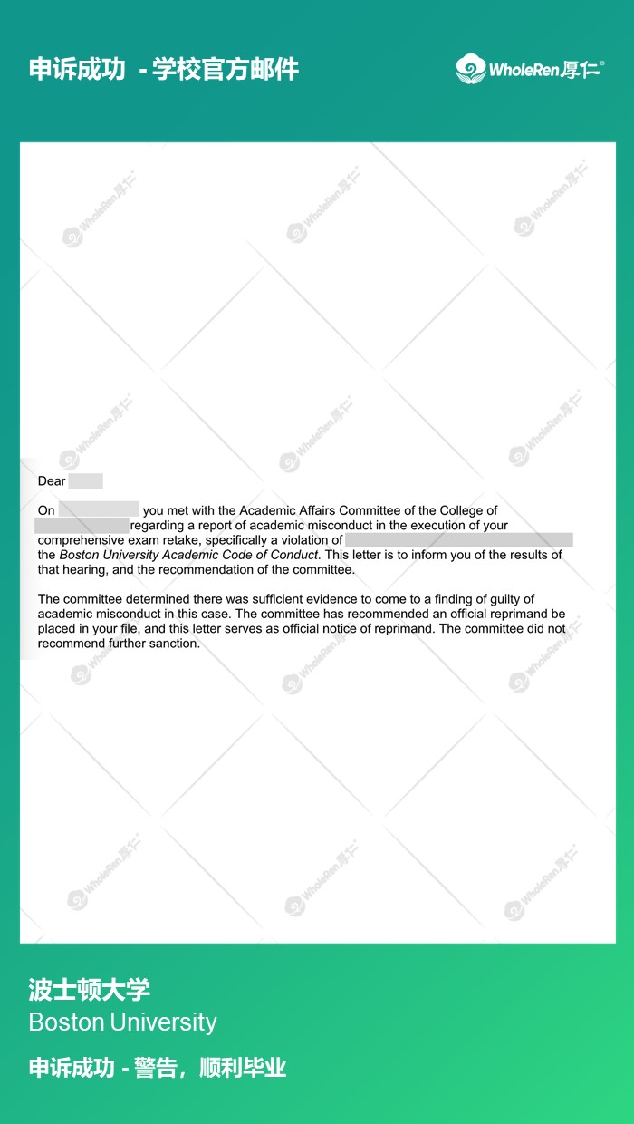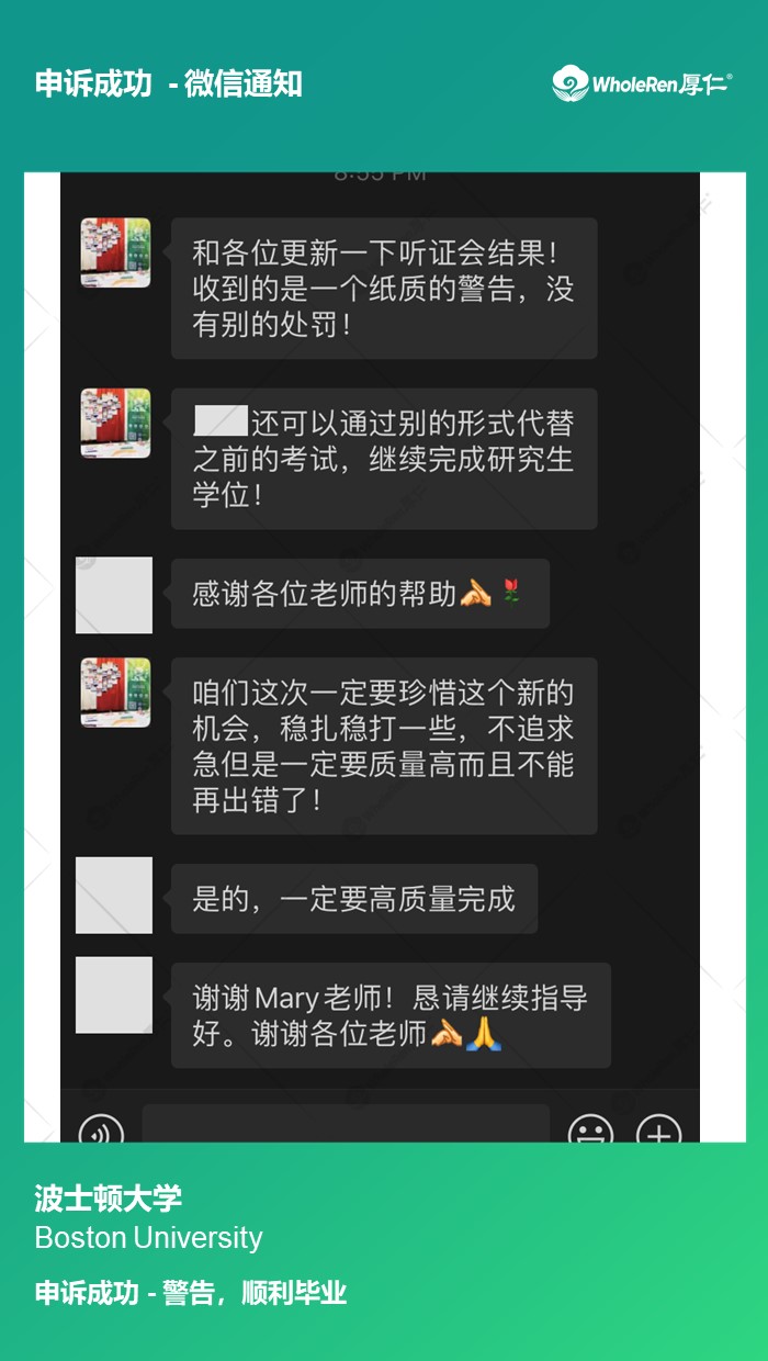 专家老师通过分析学生的论文内容,帮助Y同学找到解释突破点,指导Y同学与老师解释沟通,最终学校只给了一个警告,Y同学可以顺利毕业!